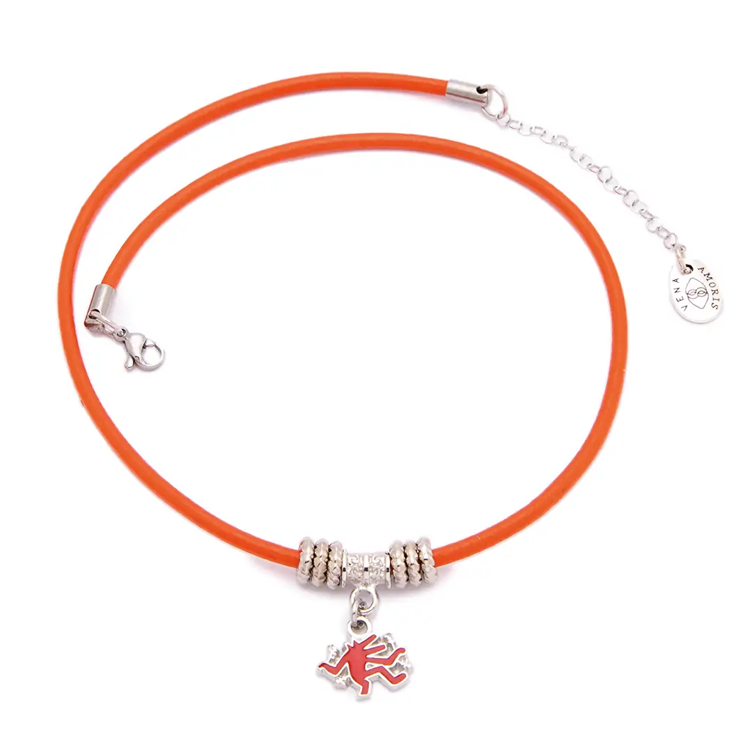 ART - COLLANA - KEITH HARING IN PELLE ROSSA