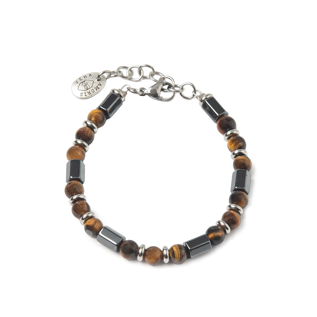 BASIC – BRACCIALE IN ACCIAIO CON GRANI OCCHIO DI TIGRE ED EMATITE