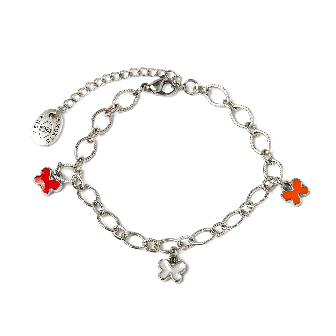 BASIC – BRACCIALE A CATENA IN ACCIAIO ZIGRINATO CON FARFALLE