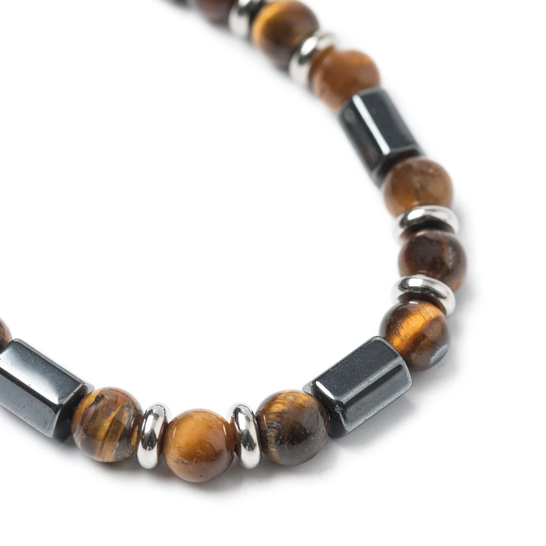 BASIC – BRACCIALE IN ACCIAIO CON GRANI OCCHIO DI TIGRE ED EMATITE