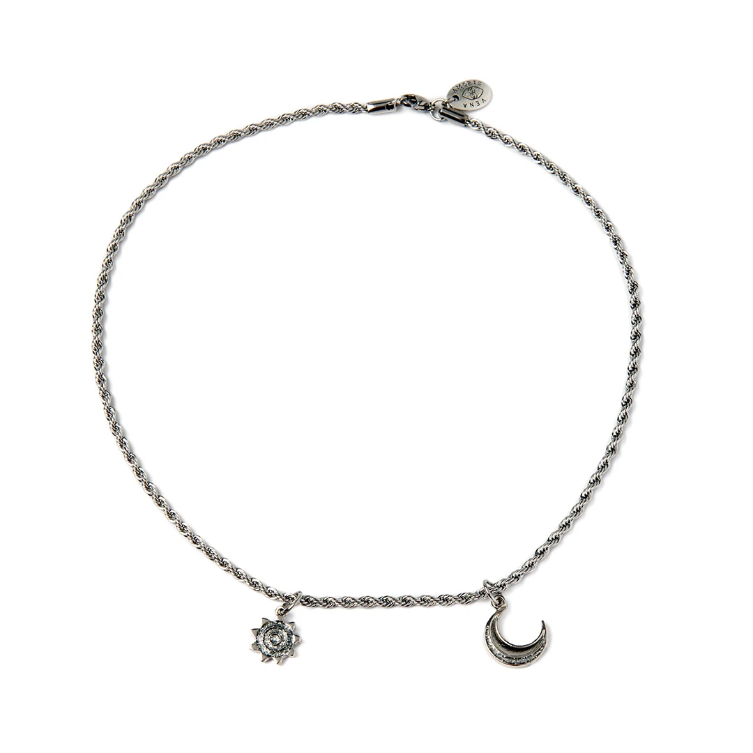BASIC – COLLANA TORCIGLIONE IN ACCIAIO CON LUNA E SOLE STRASS