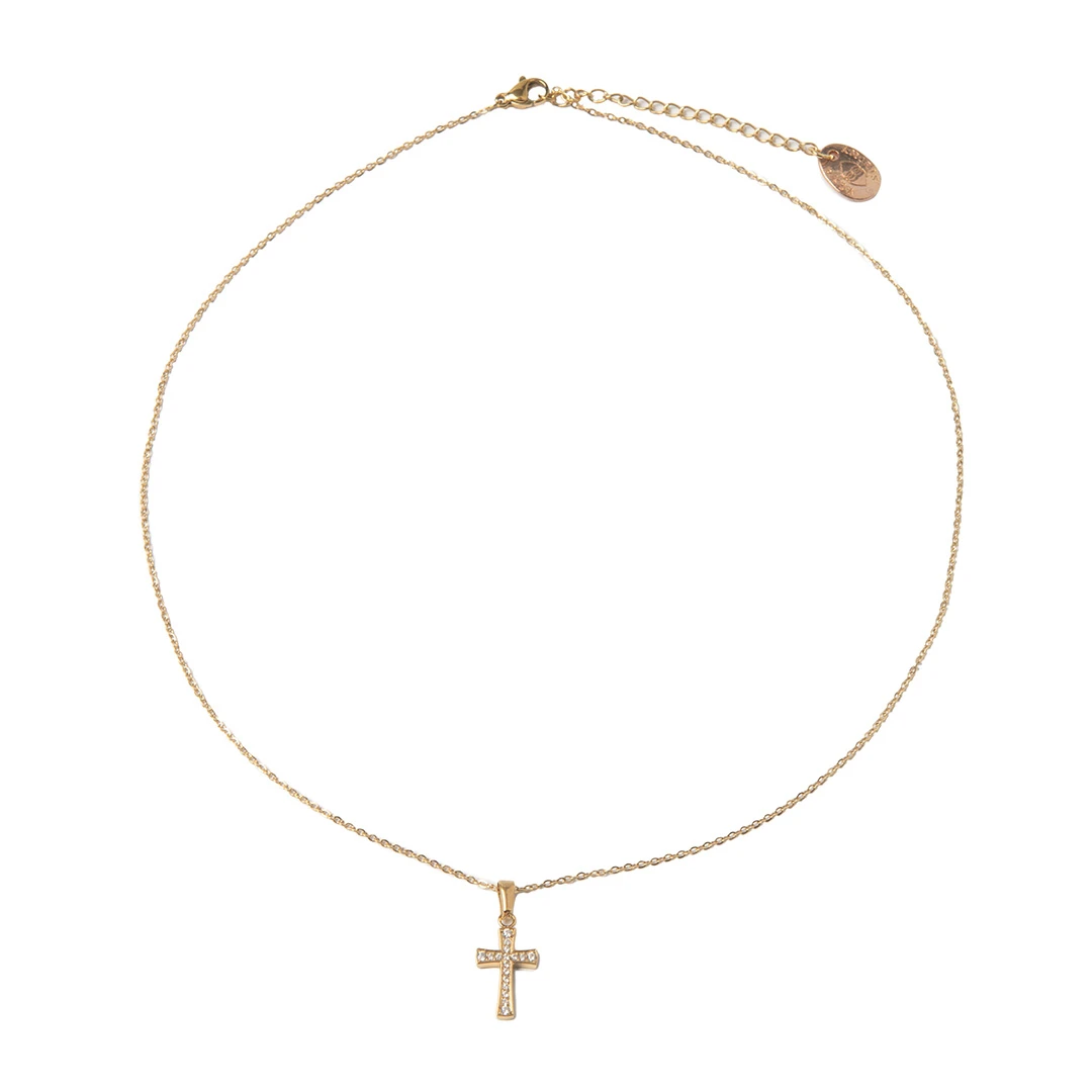 BASIC – COLLANA IN ACCIAIO DORATO CON CROCE STRASS DORATA